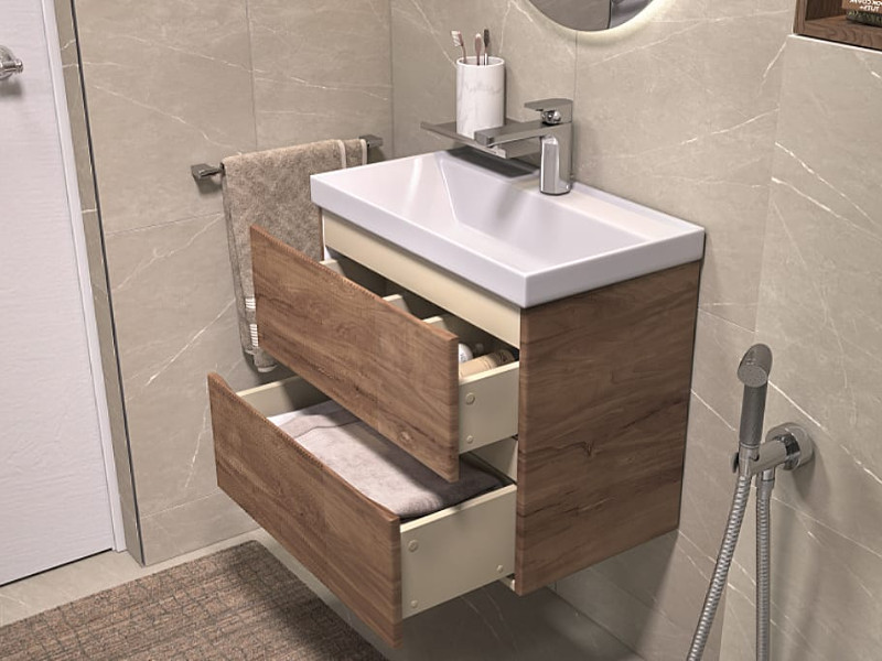 - Тумба под раковину Mondi 600-0-2 Madera Classica Slim навесная акация темная