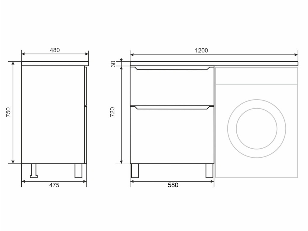 - Тумба под стиральную машину Uperwood Tanos 60 см, напольная, 2 ящика, черная