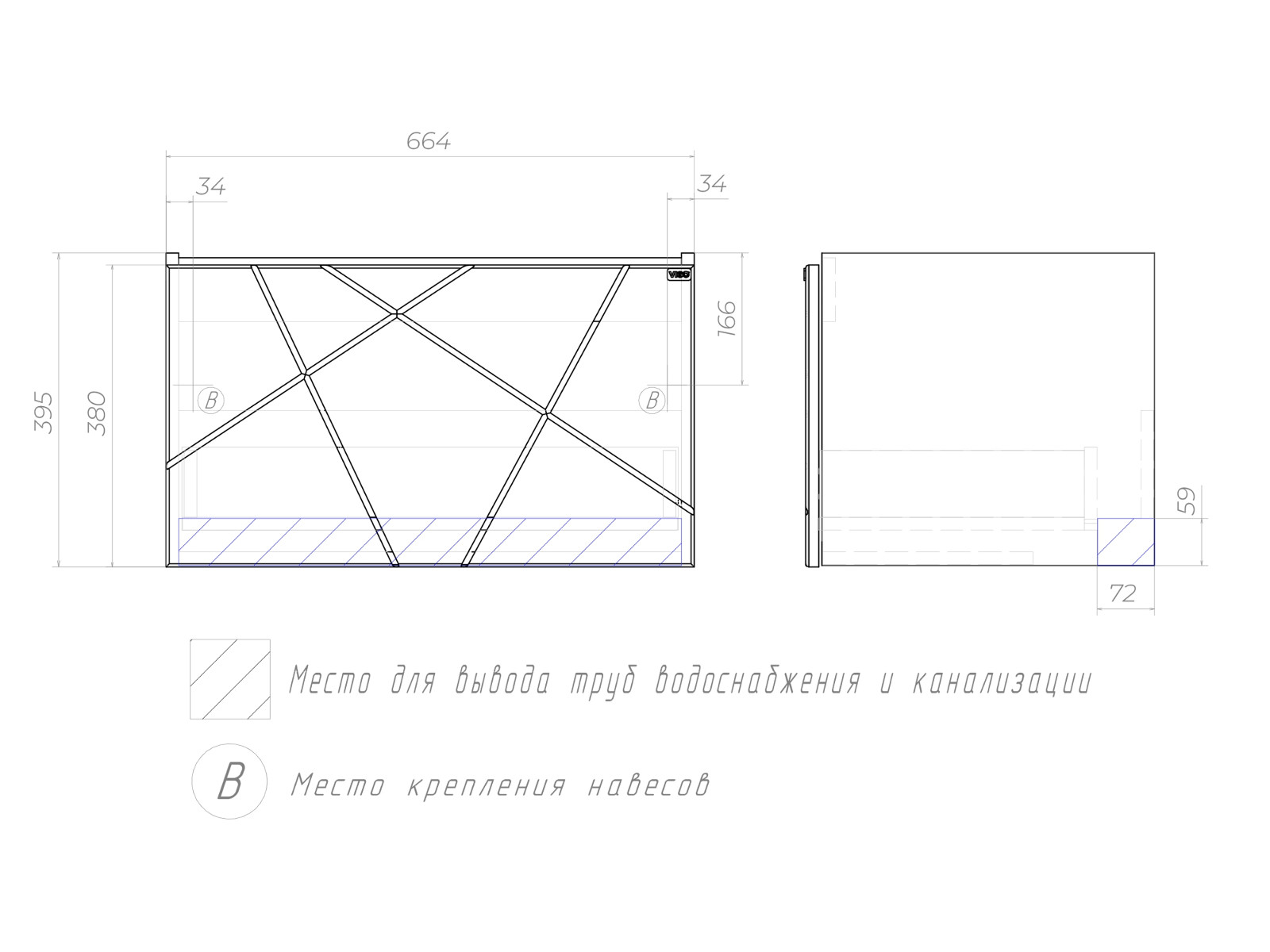 - Тумба Geometry 700-0-1 Como навесная бетон