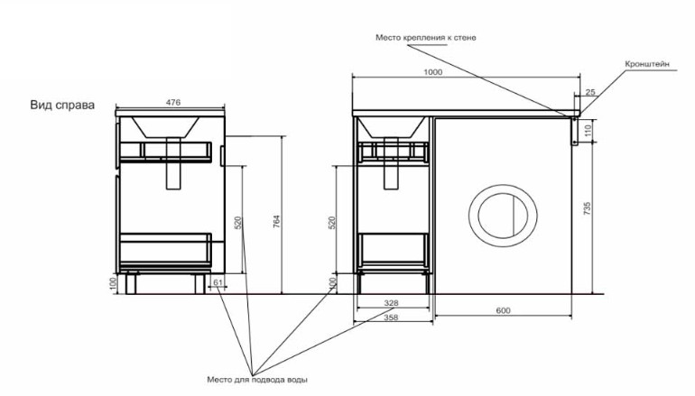 - Тумба с раковиной Dallas Luxe 1000 напольная 2 ящика левая