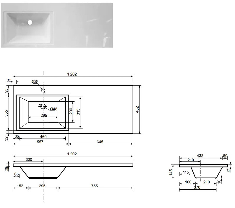 - Тумба с раковиной Dallas Luxe 1200 навесная 1 ящик левая
