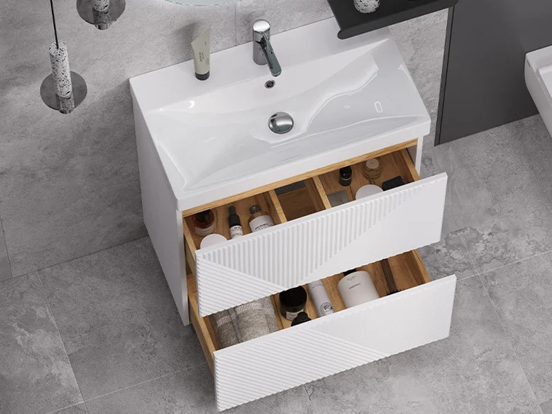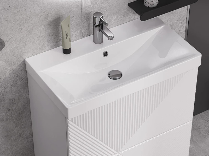 Материалы тумбы: МДФ, влагостойкая ЛДСП, полимерное покрытие ПВХ, врезная ручка, европейская фурнитура