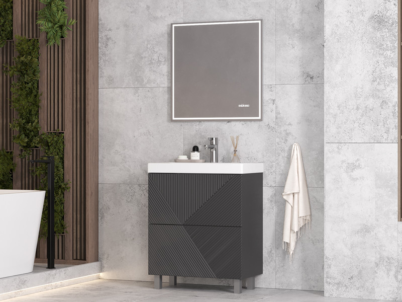 Материалы тумбы: МДФ, влагостойкая ЛДСП, полимерное покрытие ПВХ, врезная ручка, европейская фурнитура
