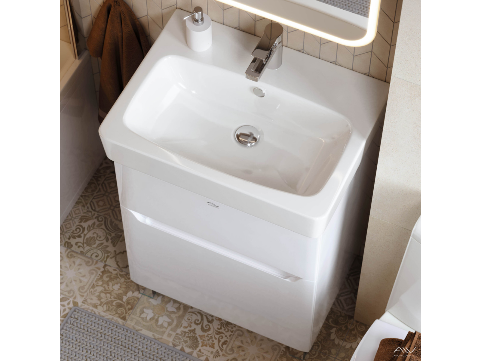 Тумба с раковиной Lana 60 белая Умывальник Нео 60