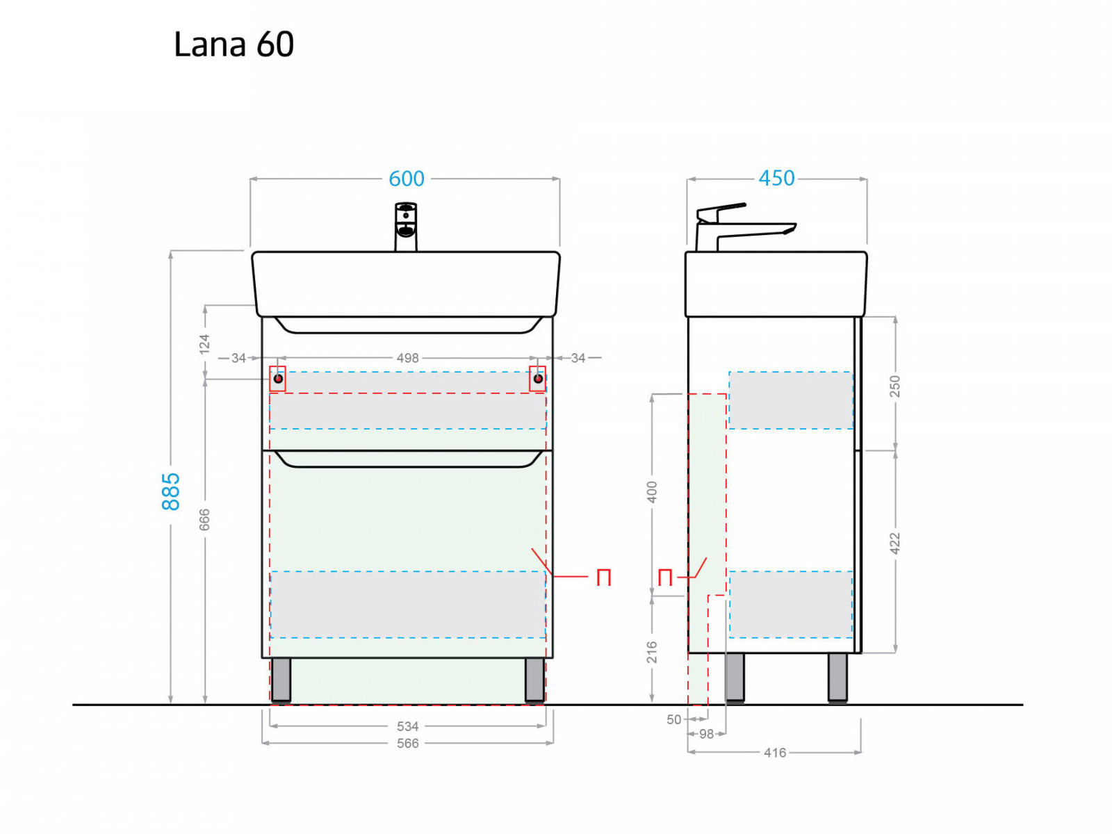 - Тумба с раковиной Lana 60 белая Умывальник Нео 60