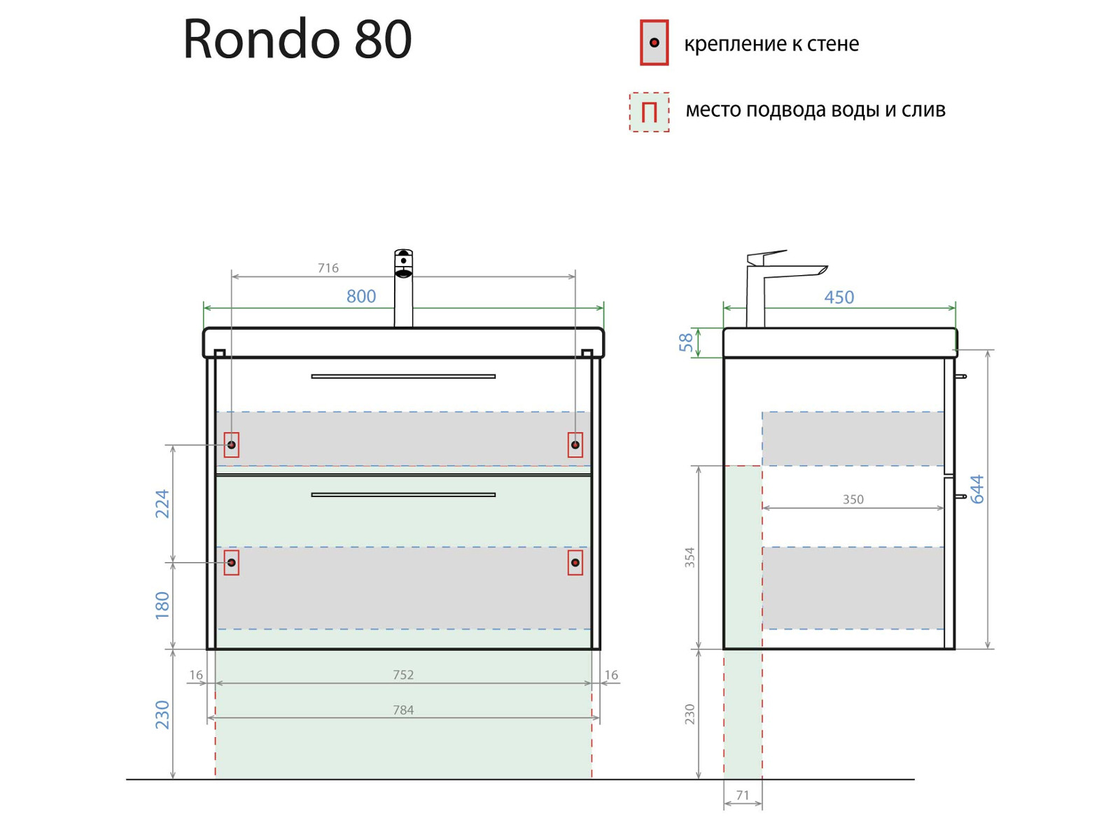 - Тумба с раковиной Rondo 80 Умывальник Como 80