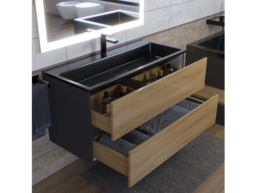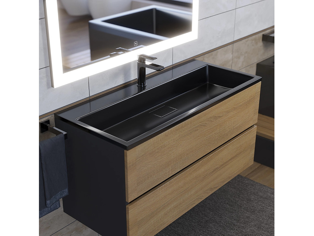 - Тумба с раковиной Uperwood Barsa 100 см раковина черный глянец-тумба черная/дуб сонома