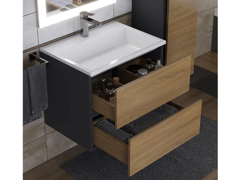 - Тумба с раковиной Uperwood Barsa 60 см раковина белая-тумба черная/дуб сонома