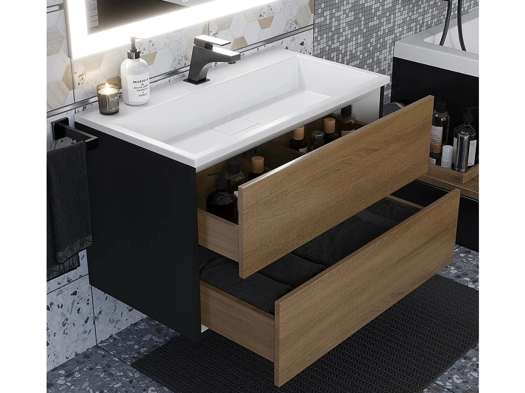 Тумба с раковиной Uperwood Barsa 80 см раковина белая-тумба черная/дуб сонома