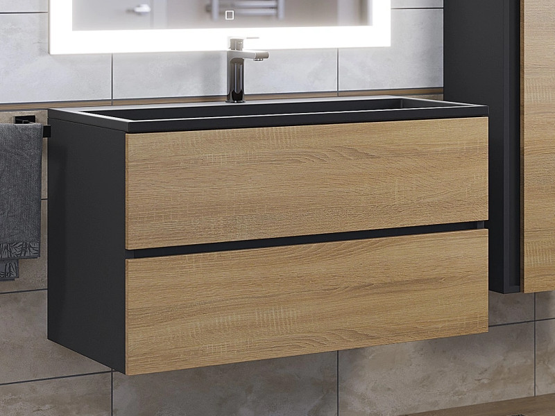 Тумба с раковиной Uperwood Barsa 90 см раковина черный глянец-тумба черная/дуб сонома