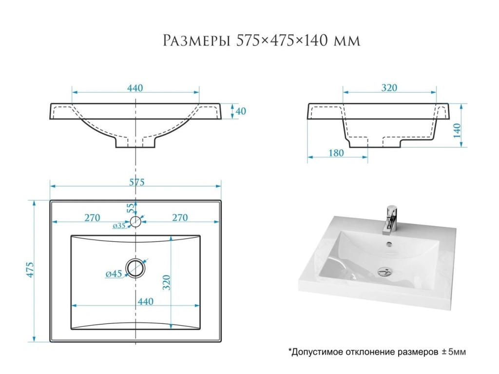 - Тумба с раковиной Uperwood Eva Дуб Харбор белый 60 см