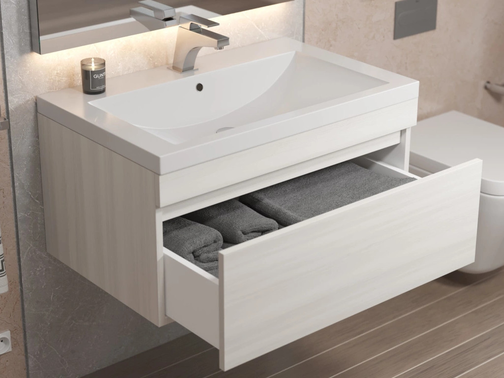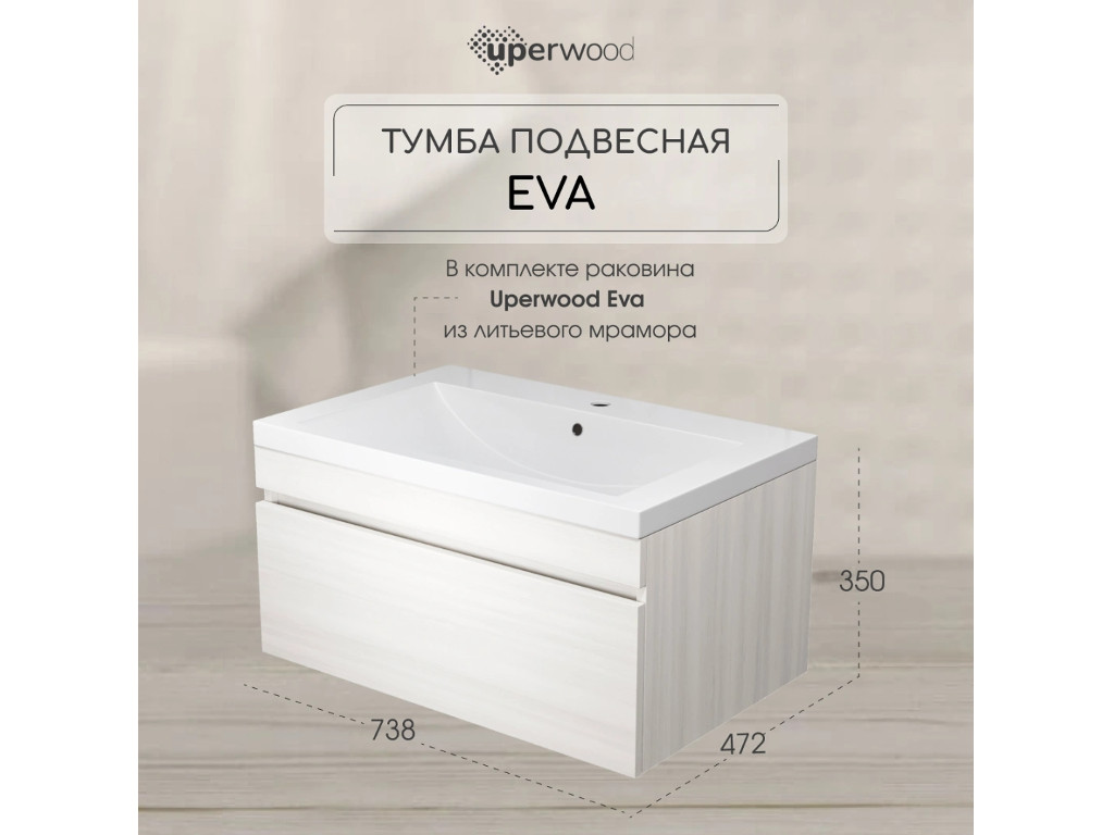 - Тумба с раковиной Uperwood Eva Дуб Харбор белый 75 см