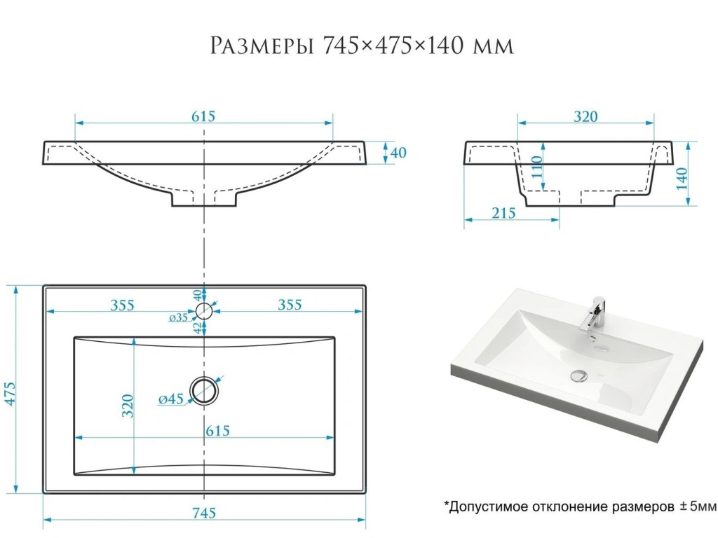 - Тумба с раковиной Uperwood Eva Крафт Табачный 75 см
