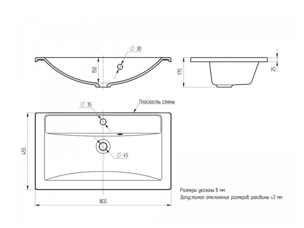- Тумба с раковиной Uperwood Foster черная 80 см