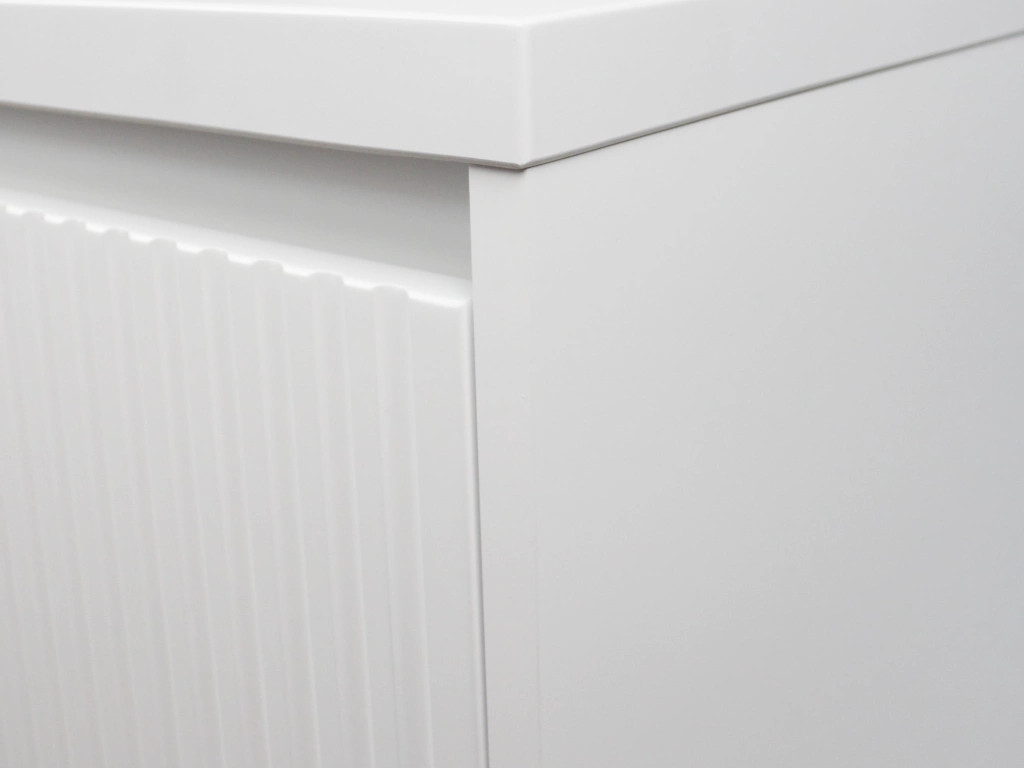 - Фасад и боковые стенки изделия выполнены из МДФ толщиной 16 мм. Фасады с вертикальной фрезеровкой.