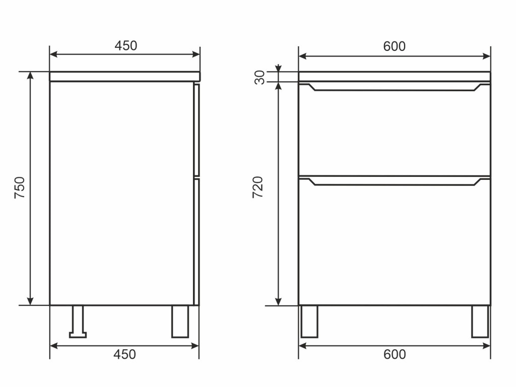 - Тумба с раковиной Uperwood Tanos 2 ящика напольная 60 см черная