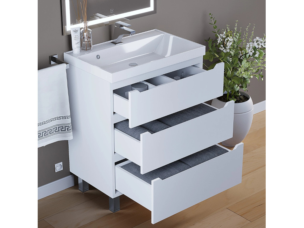 Тумба с раковиной Uperwood Tanos 3 ящика напольная 70 см белая