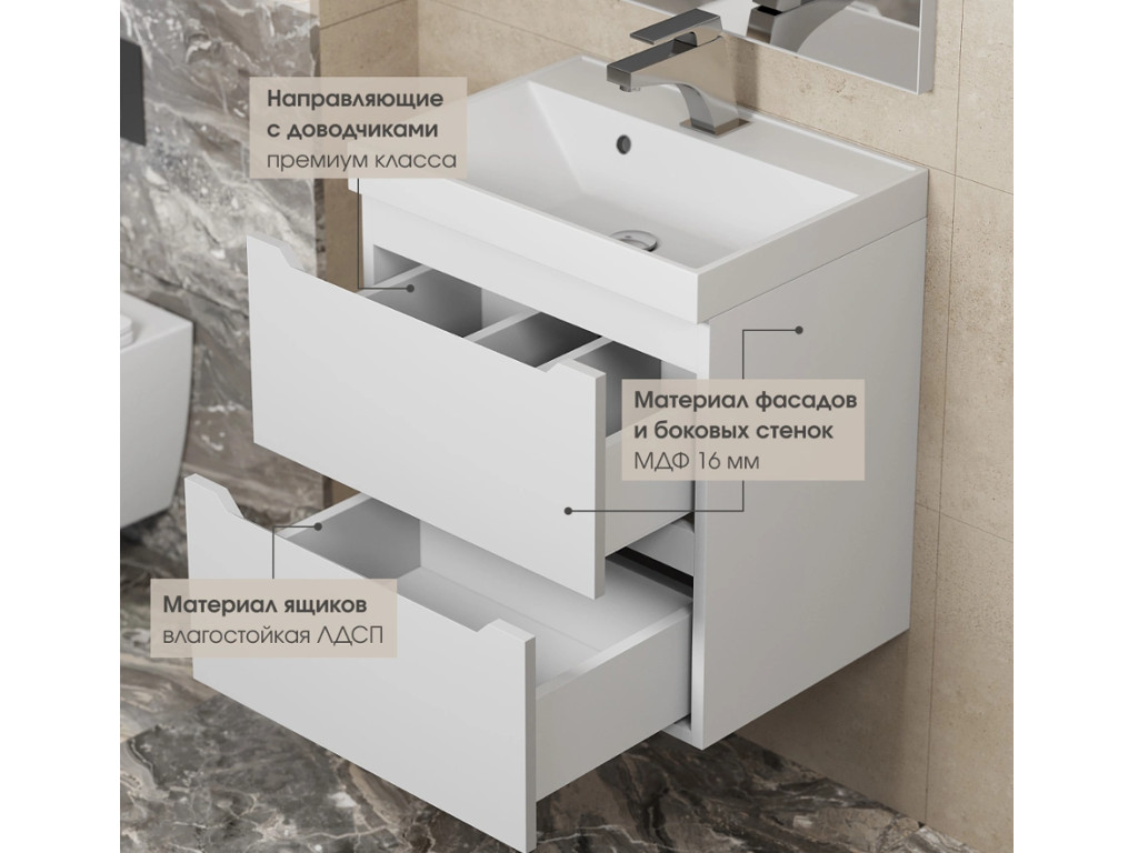 Тумба с раковиной Uperwood Tanos матовая белая 50 см