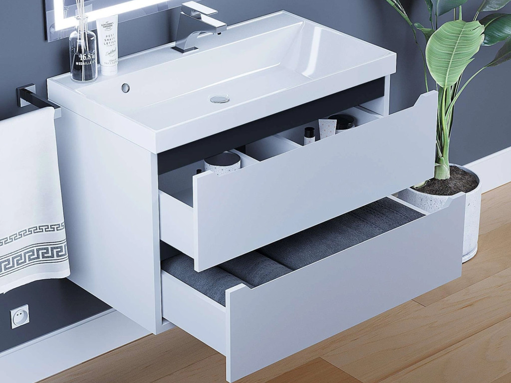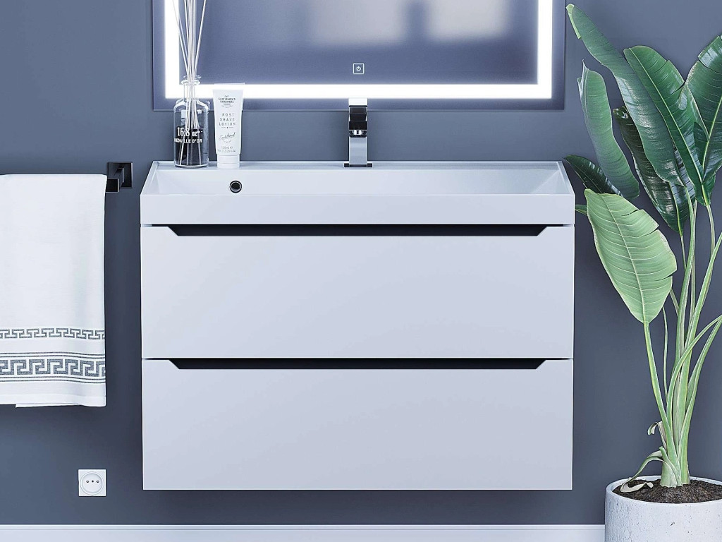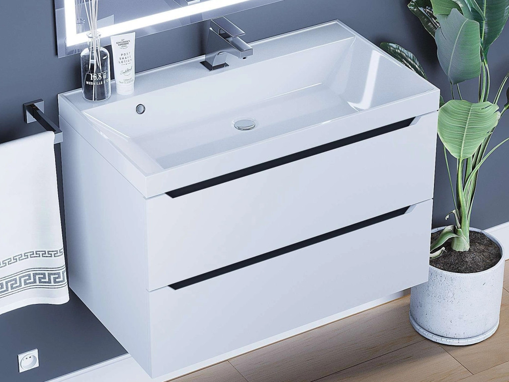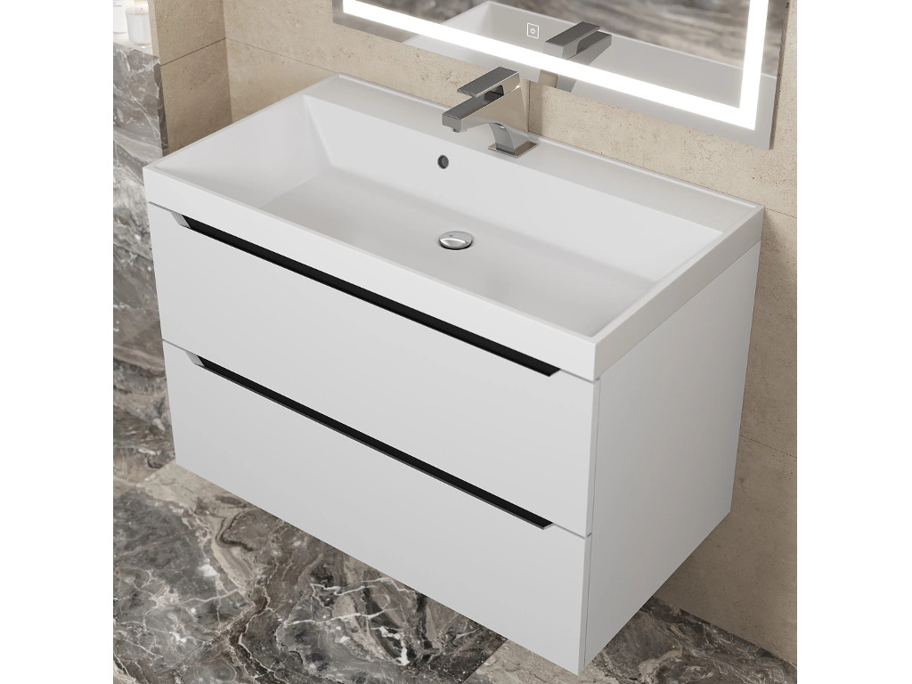- Тумба с раковиной Uperwood Tanos матовая белая/графит 80 см
