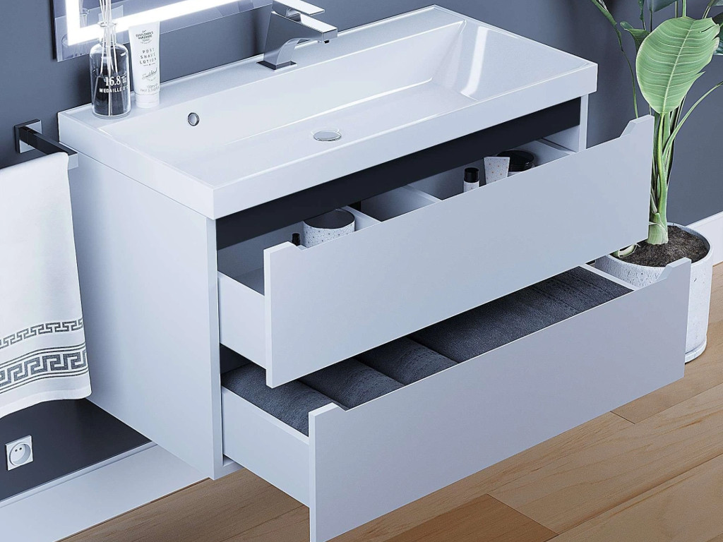 - Тумба с раковиной Uperwood Tanos матовая белая/графит 90 см