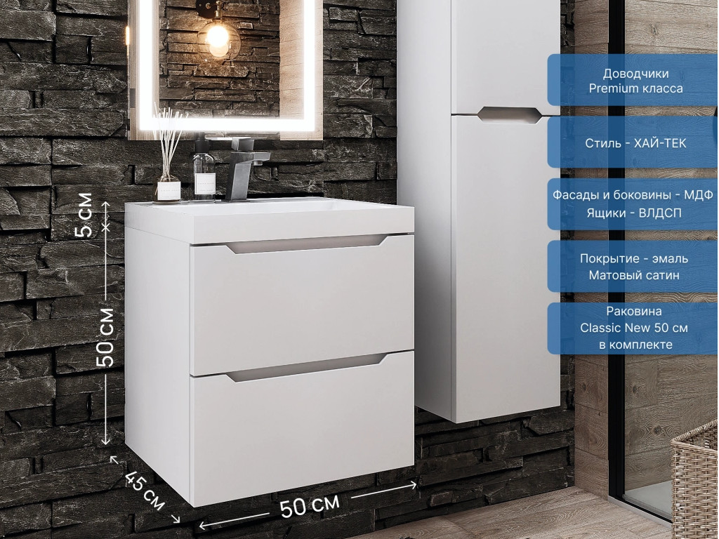 Тумба с раковиной Uperwood Tanos NEW 50 см белая