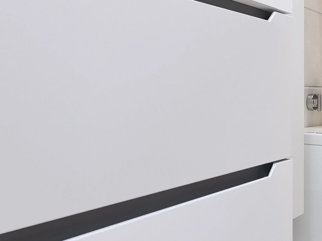 Выдвижные ящики изготовлены из влагостойкой ЛДСП. Ящики оснащены доводчиками. Вся фурнитура и доводчики премиум-класса.