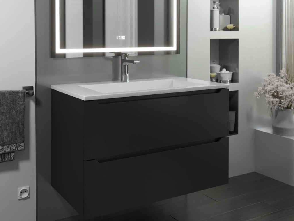 - Тумба с раковиной Uperwood Tanos-Next черная матовая 80 см