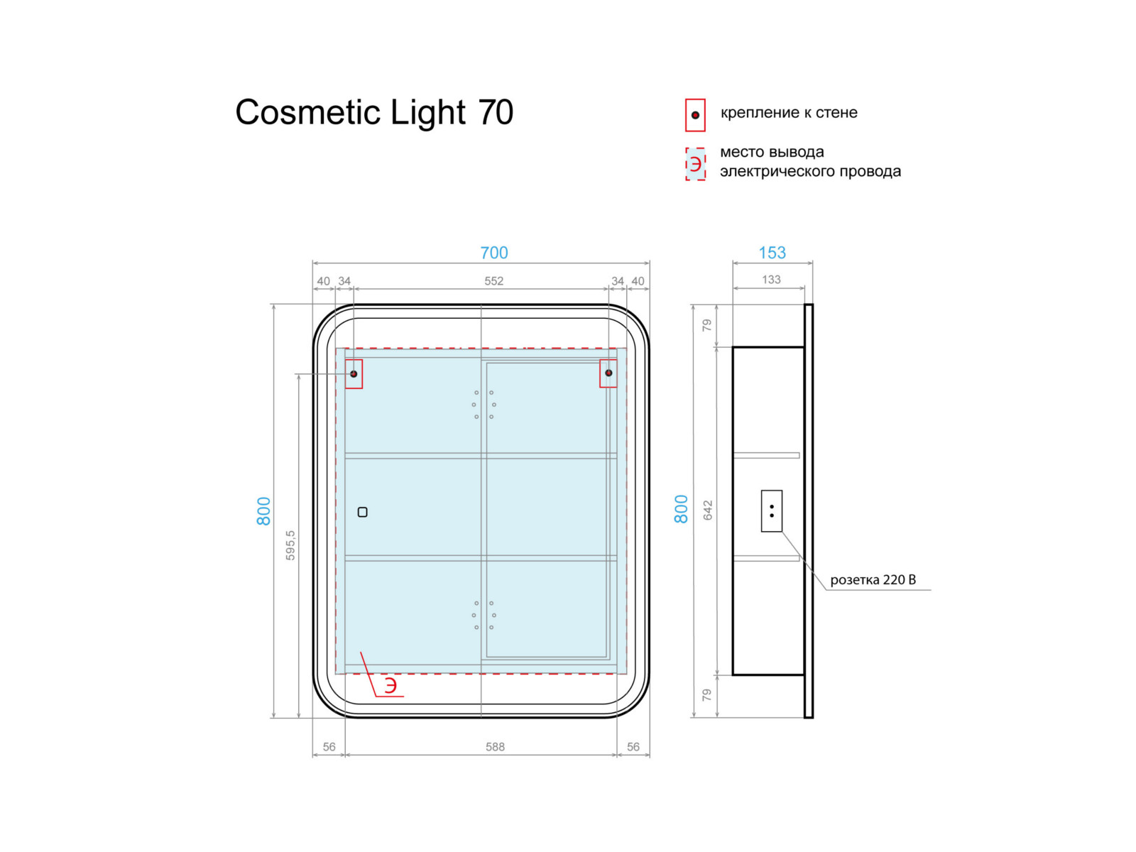 - Зеркальный шкаф Cosmetic Light 70