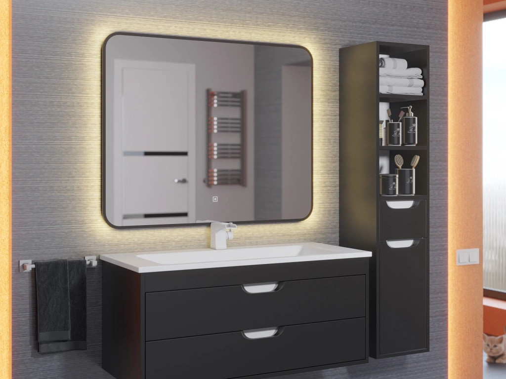 Зеркало Uperwood Modul черное теплая подсветка 100х80 см