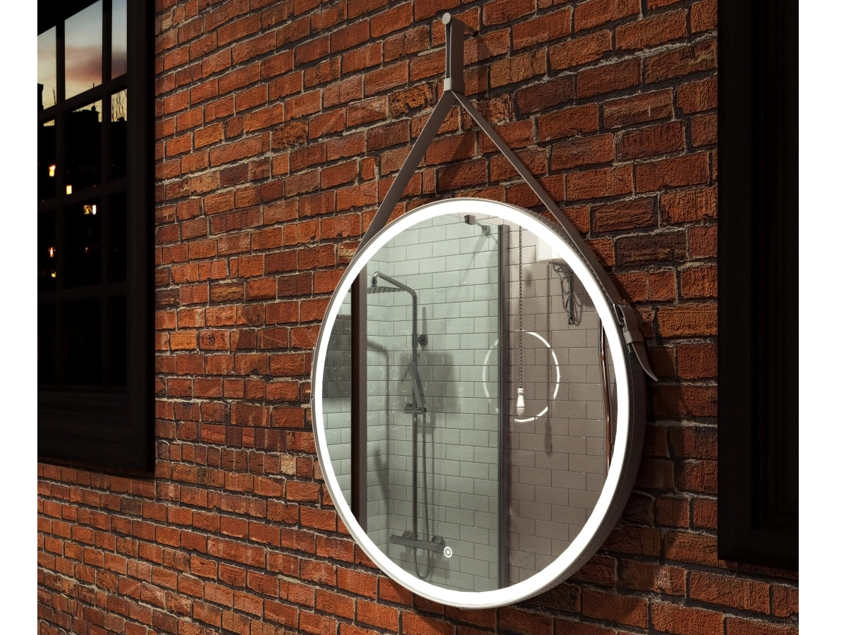 - Зеркало Uperwood Round LED подсветка белый ремень D 65 см