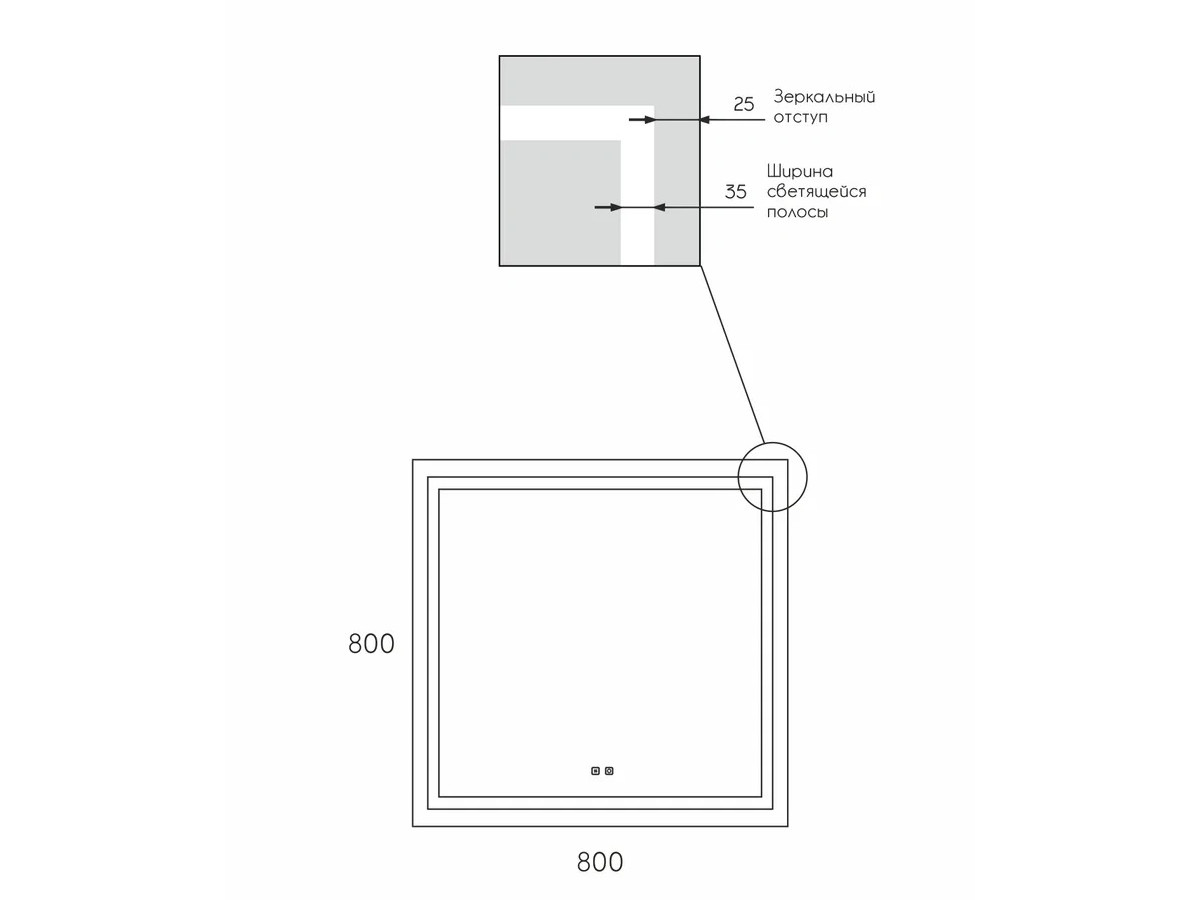 - Зеркало Uperwood Tanos LED подсветка и подогрев 80x80 см