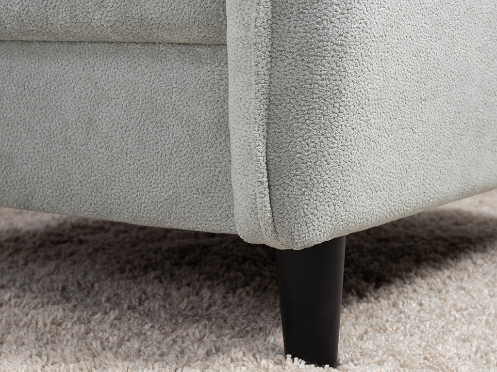 Кресло с приспинной подушкой трапецивидной формы на молнии, по трем сторонам которой проложена отделочная строчка на 1,2 см. По контуру боковин проложен декоративный кант на 1,2 см основной ткани. Кант проходит по центру передней части боковины, а по внутренней верхней части сборка.