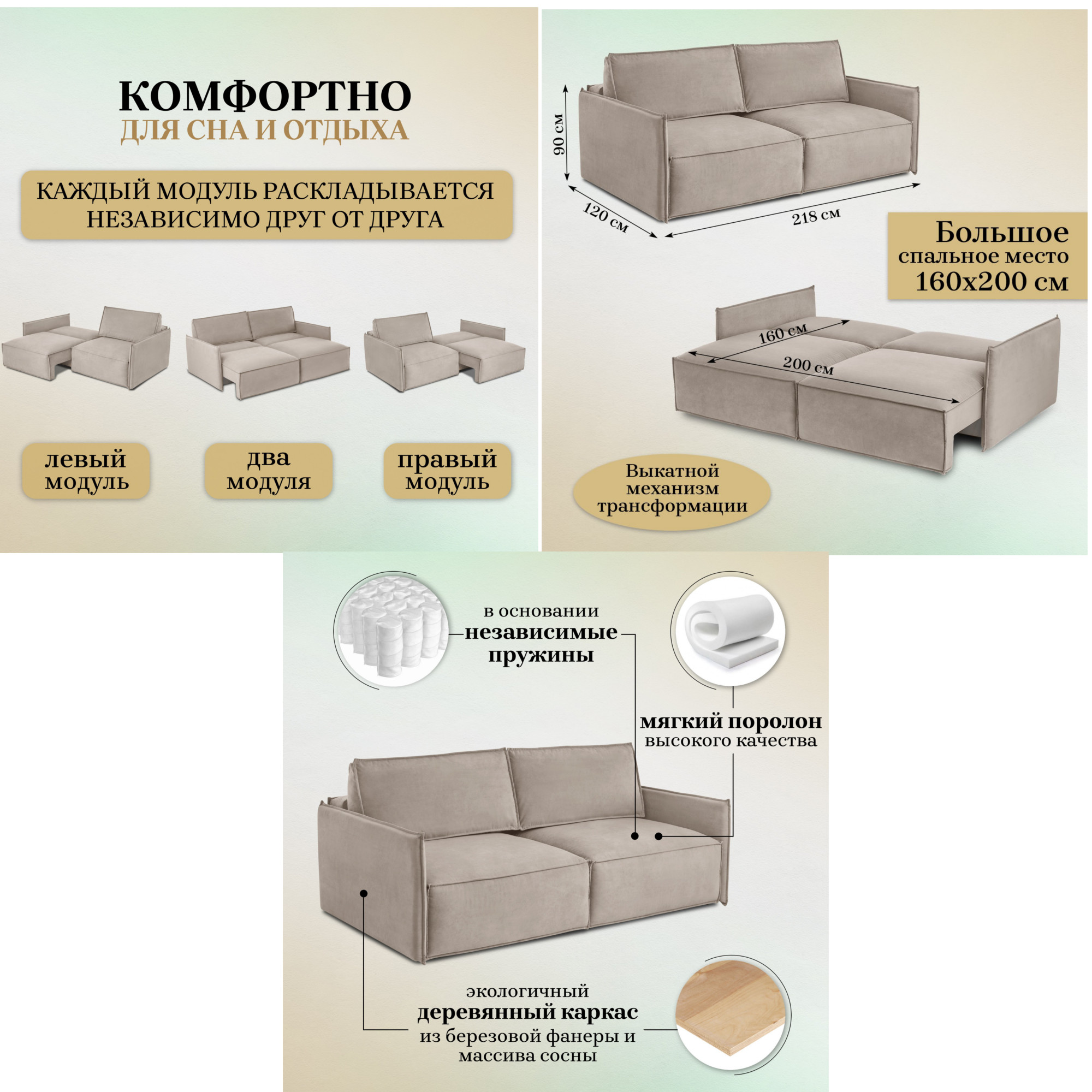 - Спальное место: 1600х2000 мм