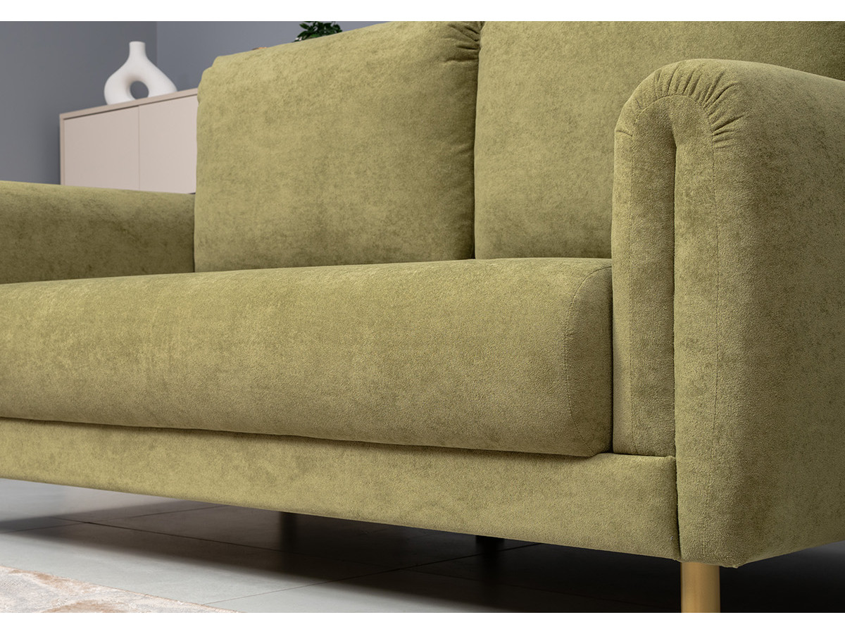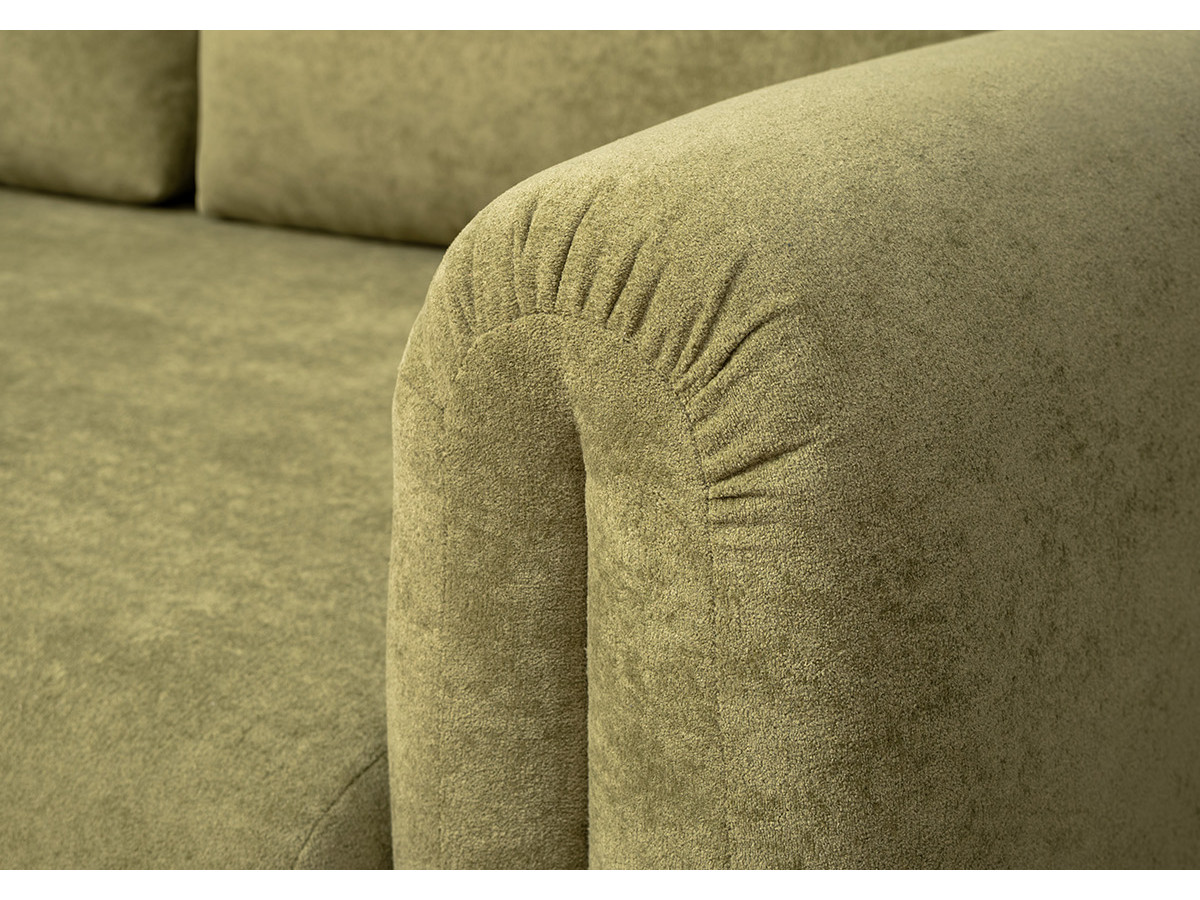 Декоративные утяжки и складки на подлокотниках придают дивану неповторимый шарм, который станет изюминкой любого интерьера — от классического до современного. Приспинные подушки со сборкой в верхней части.