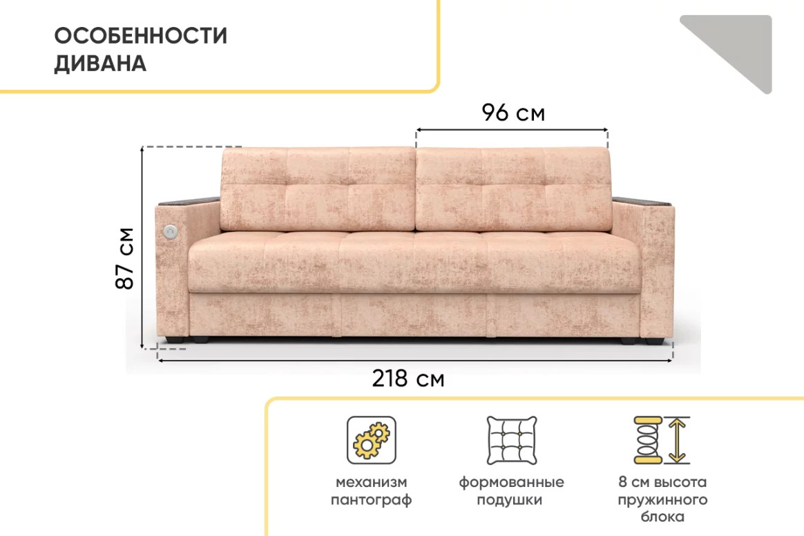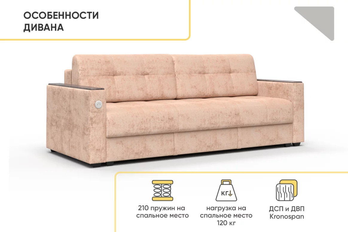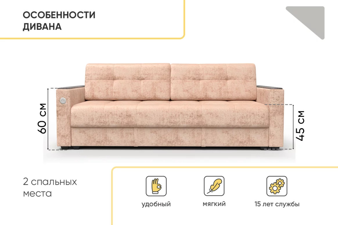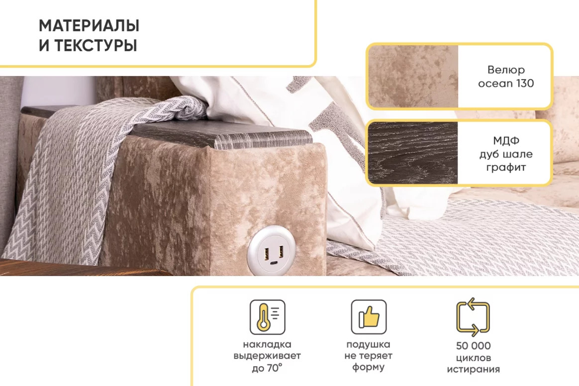 - Диван Тургояк c USB розеткой Бежевый Ocean 130