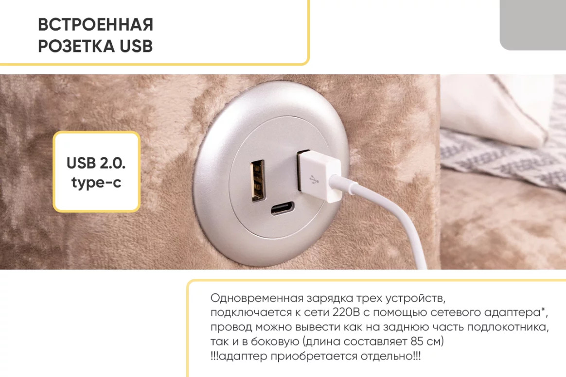 Длина провода от дивана - 85 см. USB2.0. и type-c.