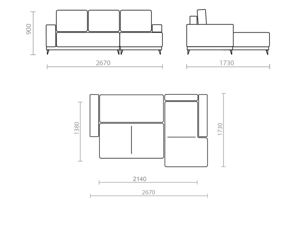 - Длина спального места, мм 2140