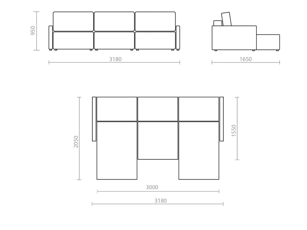 Диван Пегас 2 ПДУ М с узкими подлокотниками