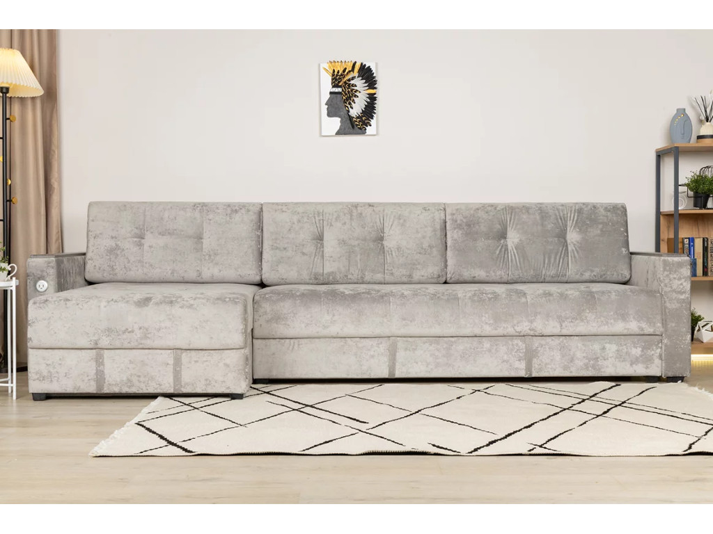 Диван угловой Тургояк c USB розеткой Светло-серый Ocean 960
