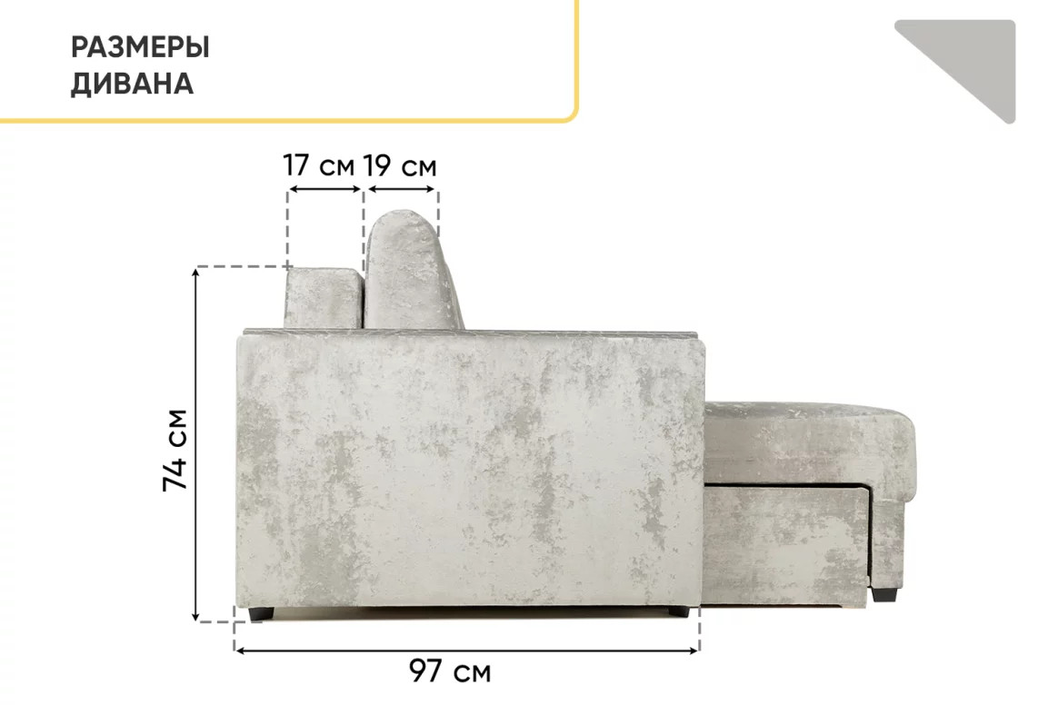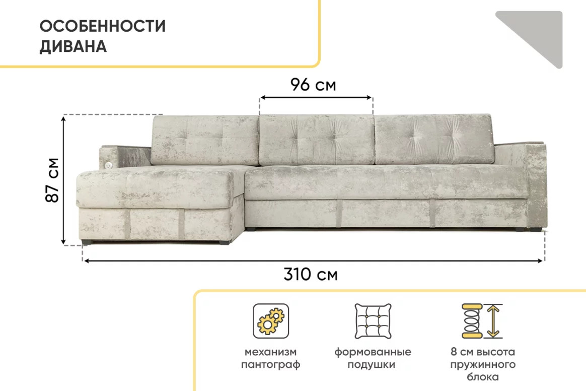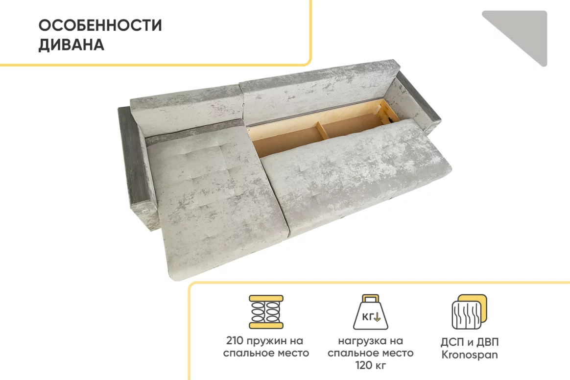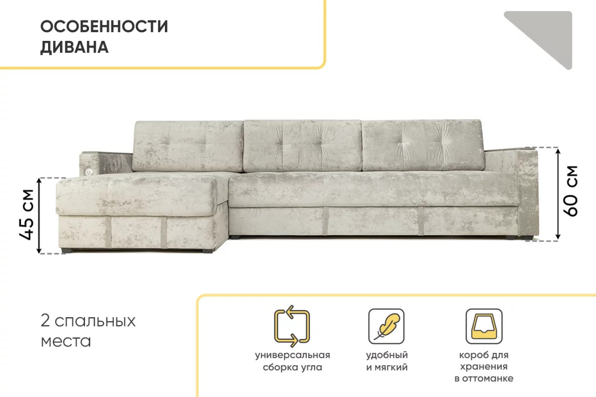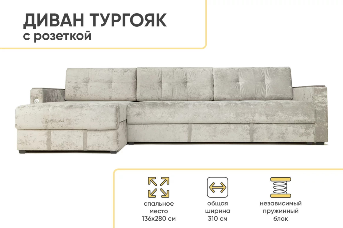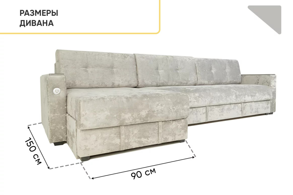 - Диван угловой Тургояк c USB розеткой Светло-серый Ocean 960