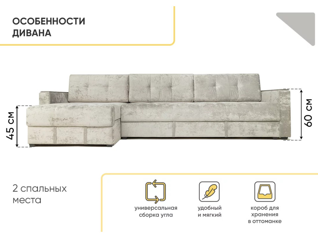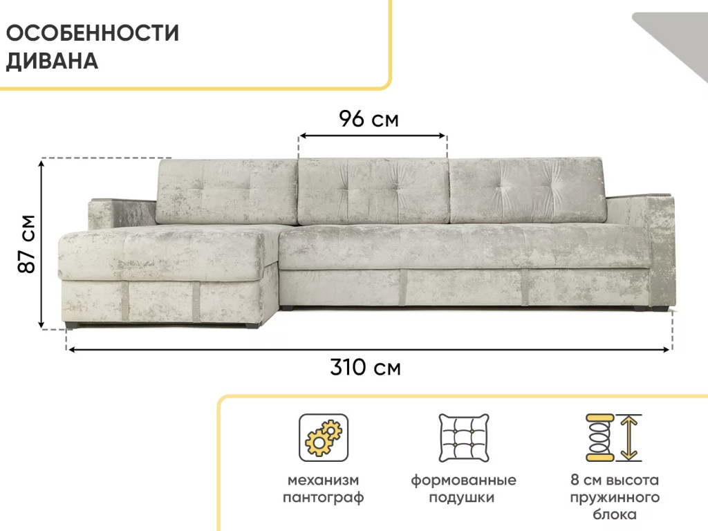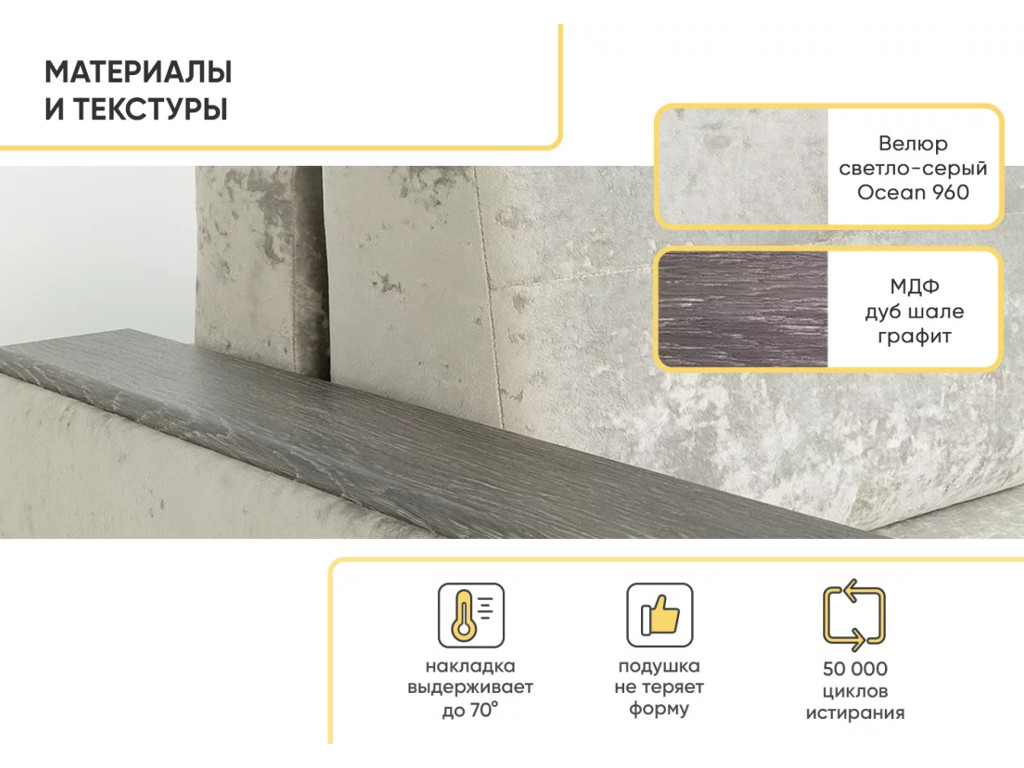 - Диван угловой Тургояк Светло-серый Ocean 960