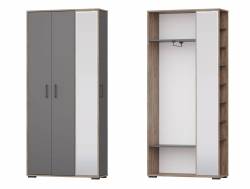Различают распашные шкафы с различным количеством створок (от одной до четырех), шкафы-купе с одной или двумя раздвижными панелями. Каркас конструкции изготавливается из прочного деревянного бруса, основу корпуса составляют плиты ДВП или ДСП, покрытые шпоном разных пород дерева, пластиком или зеркальным стеклом.
