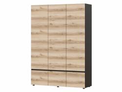 К объемным и элегантным трехстворчатым конструкциям относятся модели «Лагуна», «Белла», «Фиеста» (пензенского бренда «БТС»). Декоративными украшениями этих моделей стали отделки внешних панелей шпонами ясеня «шимо», дуба «Паллада», «Атланта», венге. Системы хранения универсальных шкафов-купе оборудованы горизонтальными полками для хранения вещей, вертикальными перегородками, разделяющими внутреннее пространство на несколько отсеков. Дополняют систему хранения выдвижные ящики, хромированные штанги.