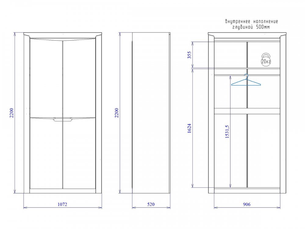 - Шкаф 2-х дверный 2200 Prime Гарда Дуб Винтерберг