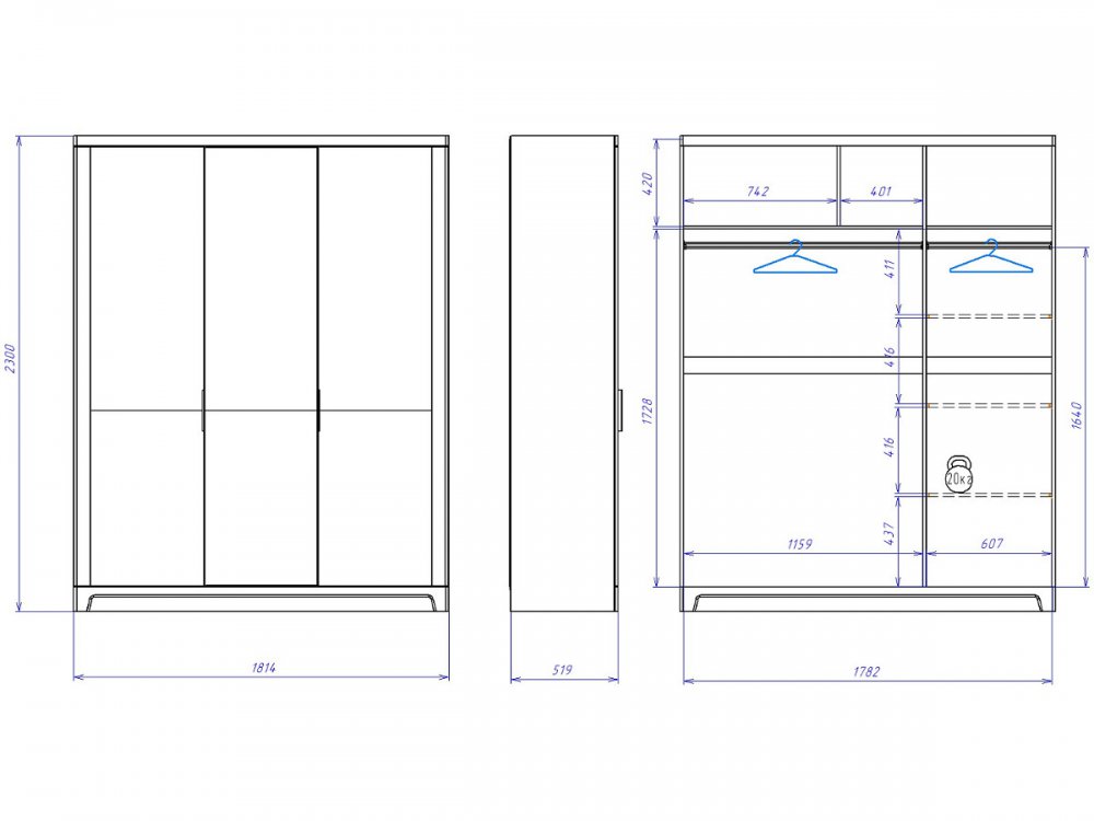 Размер ШхГхВ: 1814*519*2300 мм
