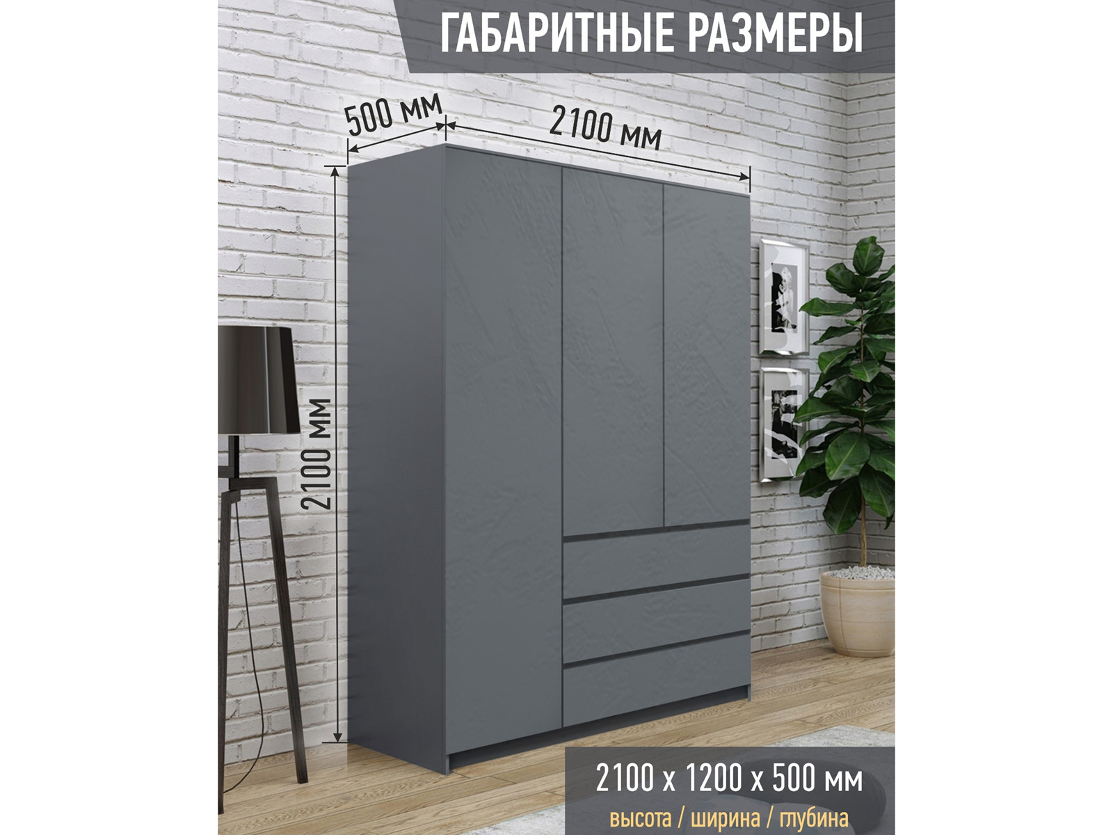 Размер ШхВхГ: 1200*2100*500 мм