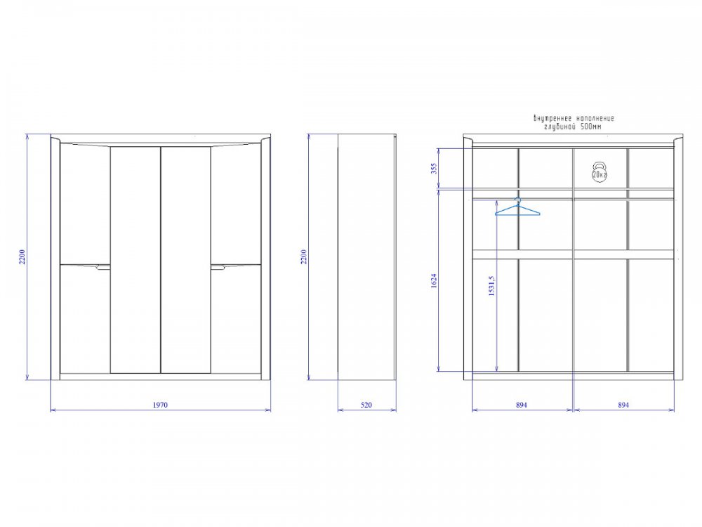 - Шкаф 4-х дверный 2200 Prime Гарда Дуб Винтерберг