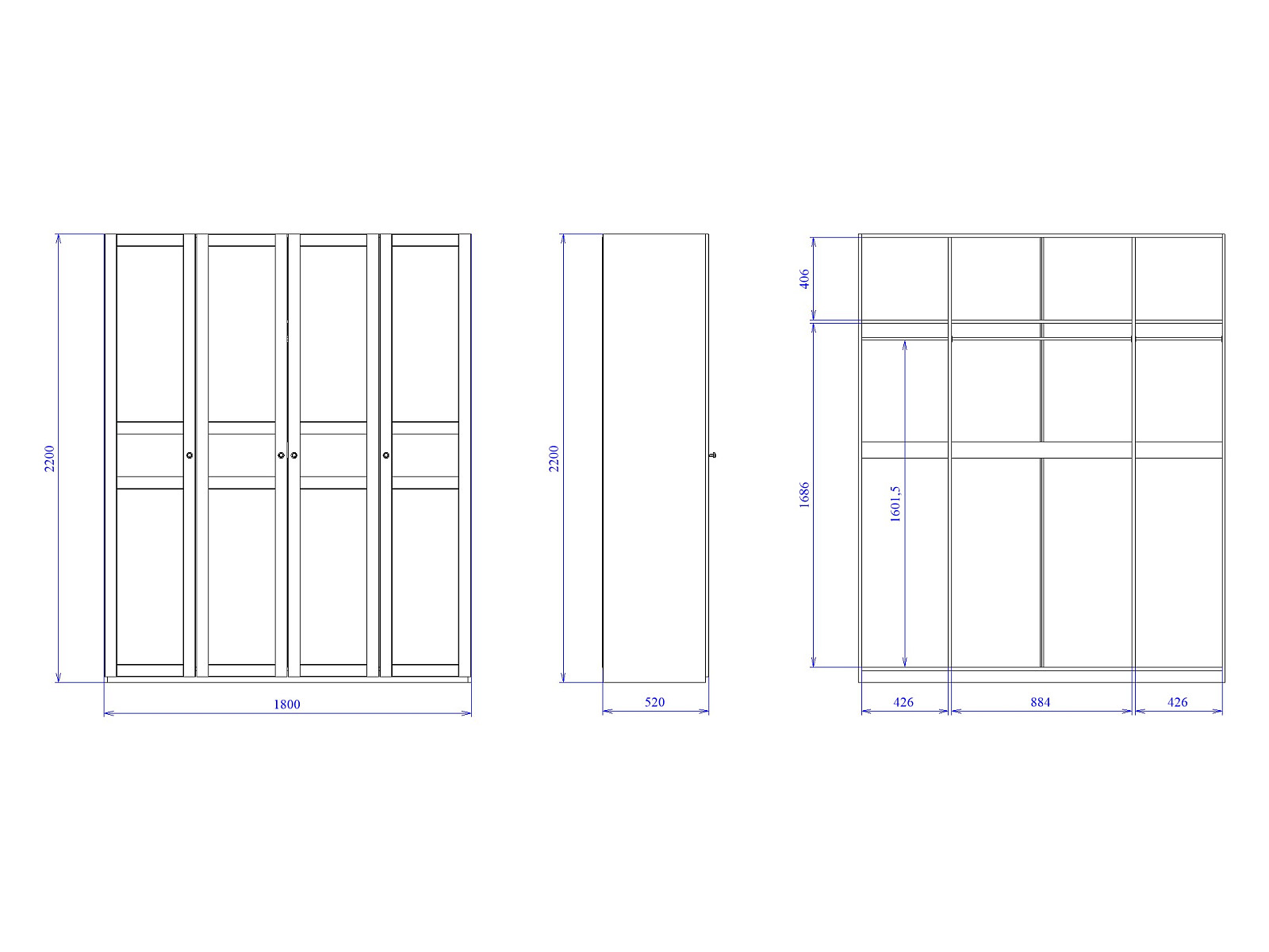 - Шкаф 4-х дверный Фрея с зеркальными дверями