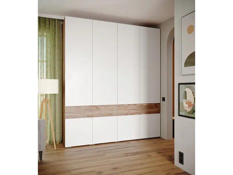 - Шкаф четырехдверный Мерида дуб крафт табачный/белый
