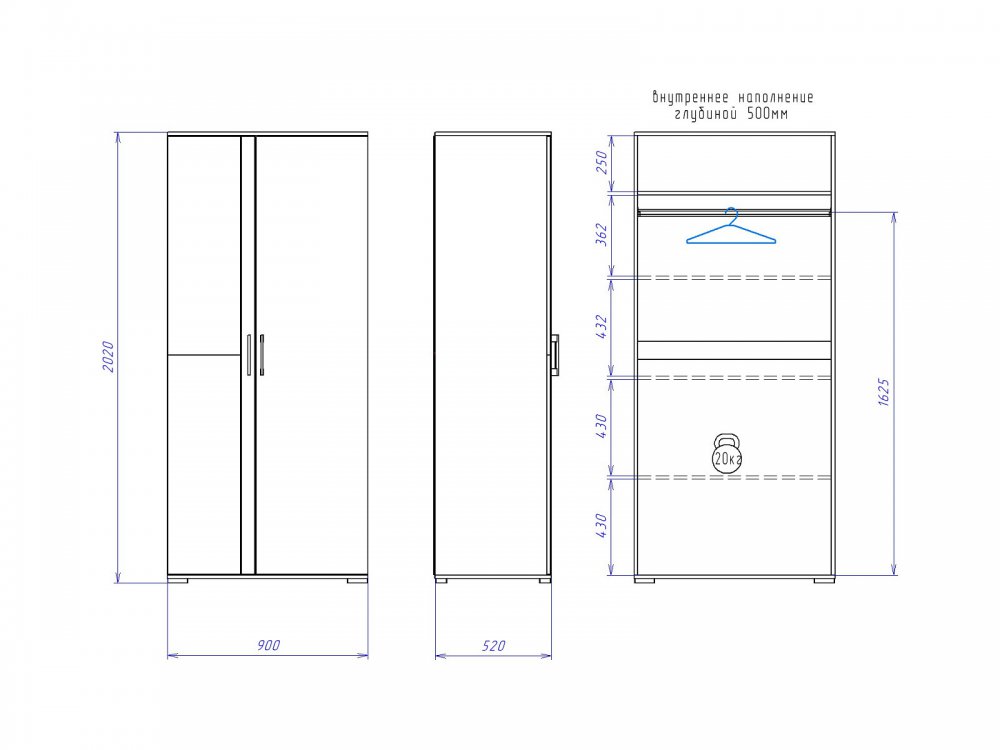 Шкаф Д-1 для одежды глубокий Денвер Риббек серый